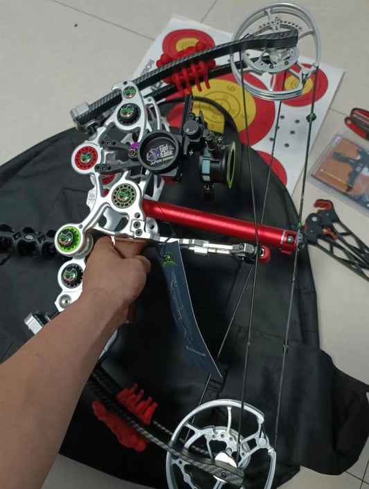 60LBS Laser Aiming 40 Series Compound Bow Multi Strand Rubber Band Pulley Bow Outdoor Hunting and Shooting Slingshot Tools