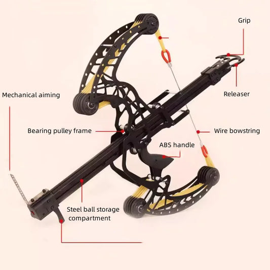 Powerful Slingshot Compound Bow Metal Hunting Catapult Continuous Fire Steel ball and Arrow for Fishing and Shooting
