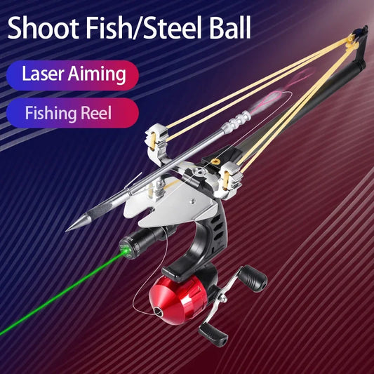 Hunting Fish Straight Rod Precision Telescopic Catapult Slingshot Green Laser Fishing Reel High Power Shooting Fishing Slingshot
