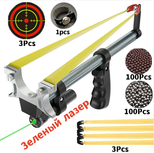 Telescopic hunting slingshot with laser-aimed metal catapult outdoor steel ball toy slingshot